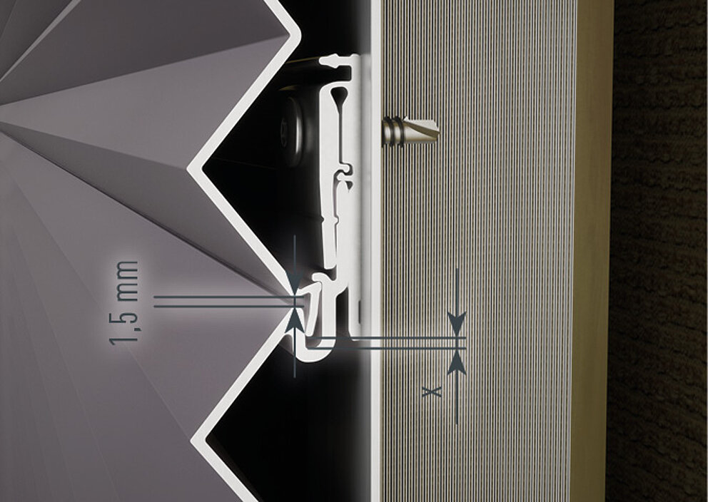 A combined installation of profiles with and without sliding clips is not permitted, as the construction height of the sliding clip (2.1 mm) creates different installation planes.