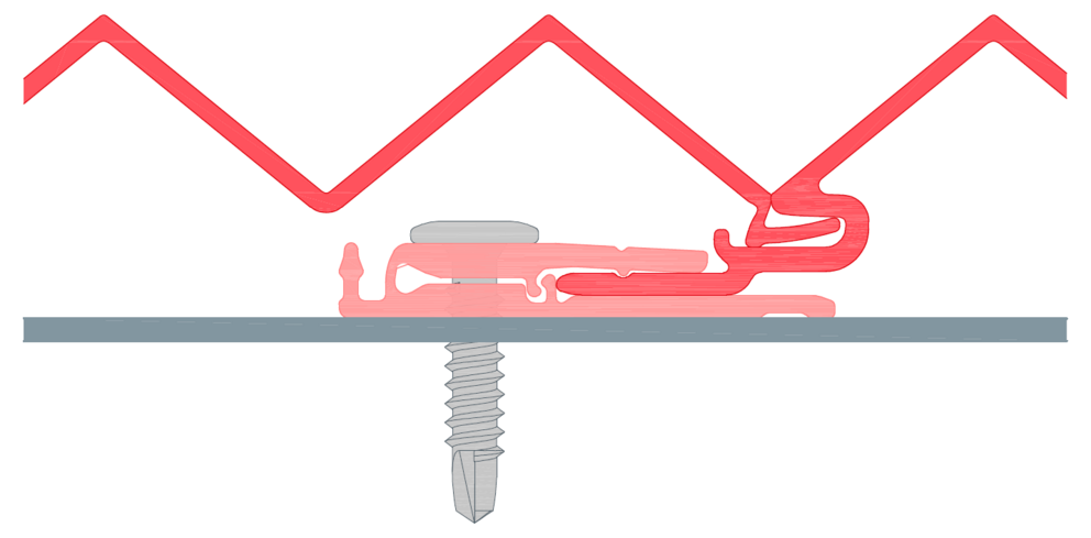 Depending on the installation method, with or without a sliding clip, the fixed point that secures the position of the profile is executed differently. If installation is carried out without sliding clips, the self-drilling screw can be screwed in directly without pre-drilling the profile and sub-structure framework.