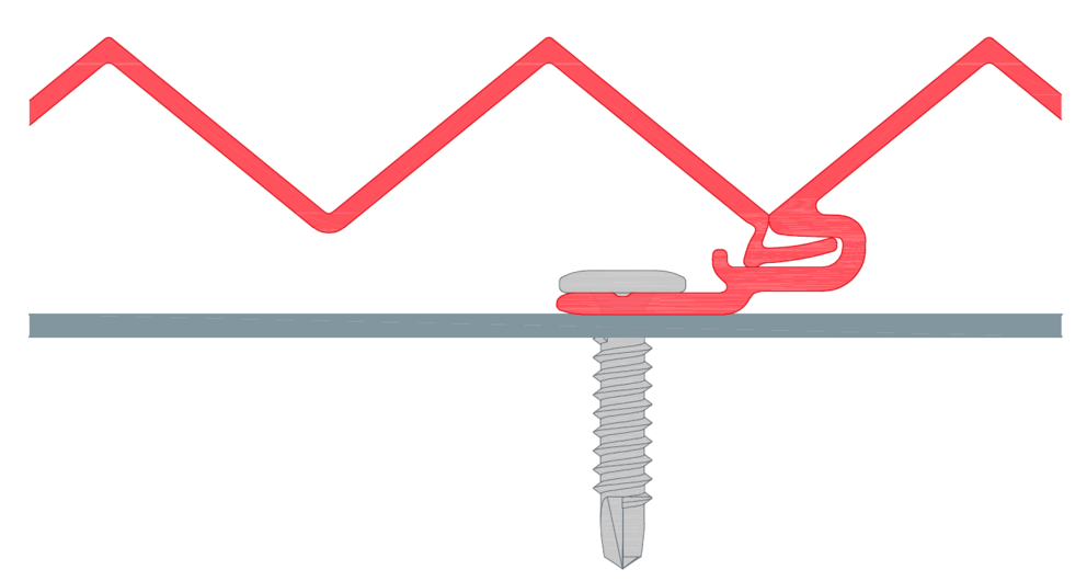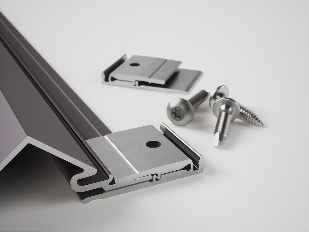 The drilling screw is screwed through the pre-punched drill hole in the clip, allowing the extruded profiles to be installed in such a way that they can expand.