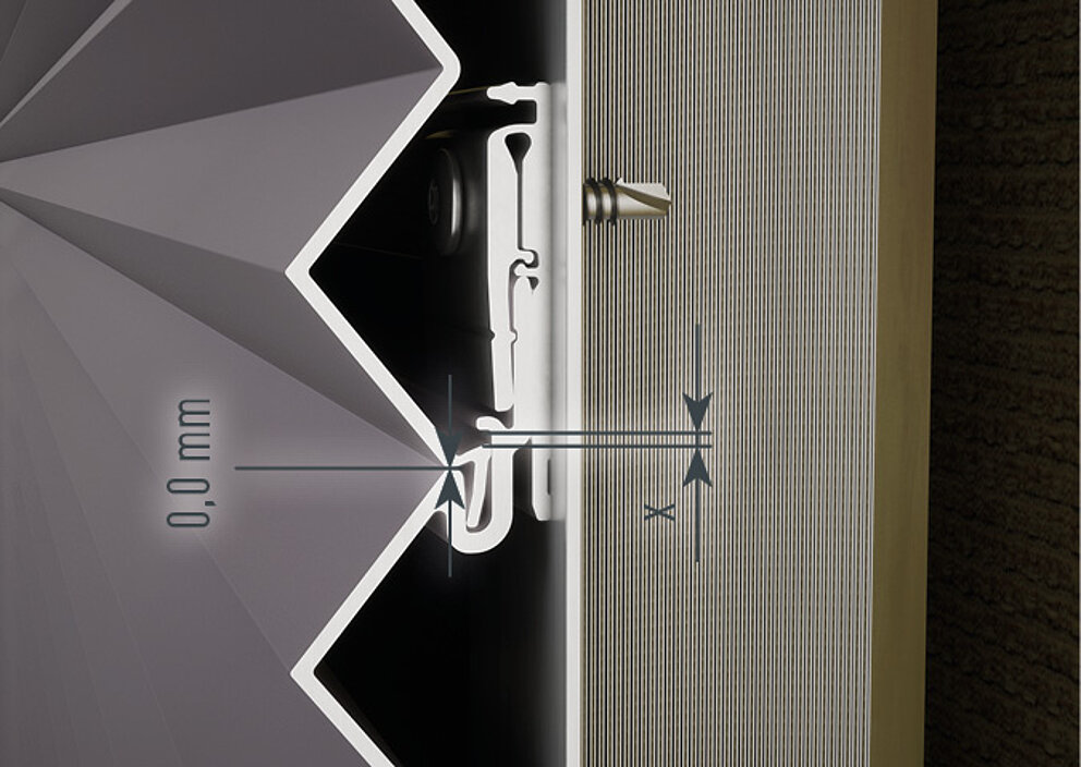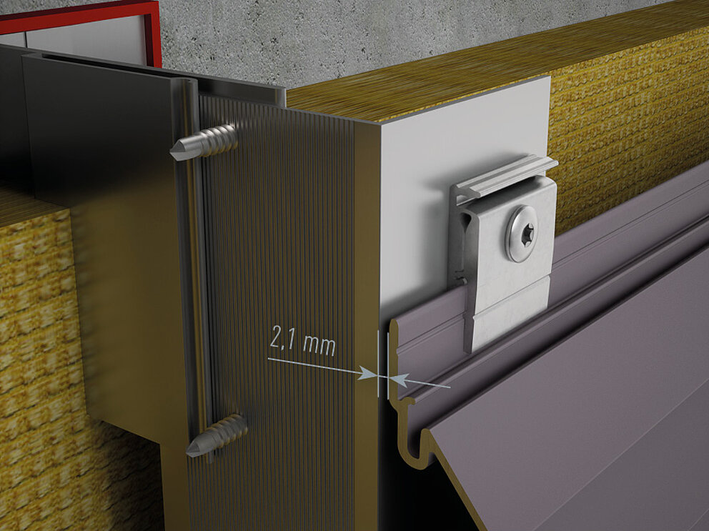 The installation system allows a compensation of +1.5 / -0 mm per cladding width. If compensation is required, it is recommended to distribute it across several profiles to ensure the straightness of the row and to avoid creating prominent joints. In this way, the compensation remains concealed and is almost imperceptible visually, resulting in a uniform and unobtrusive appearance.