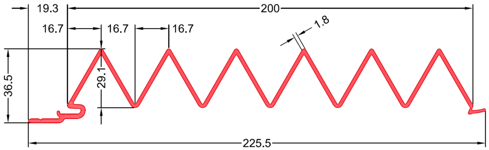 • Total profile width: 225.5 mm