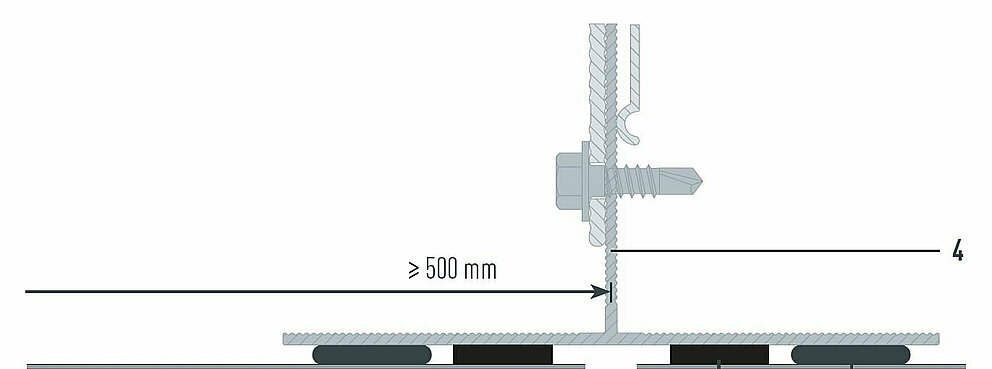 Always use T-profiles with a support surface of at least 100 to 120 mm for the panel joint. L-profiles with a support surface of 40 mm are sufficientbetween the joints.