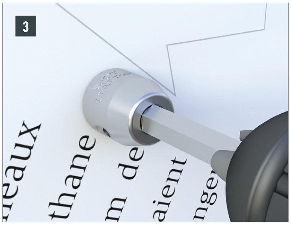 The screwed mechanical fastening system consists of a facade screw, a special LT-XT TOOL TX 25 bit and matching fixed and sliding point bushings.