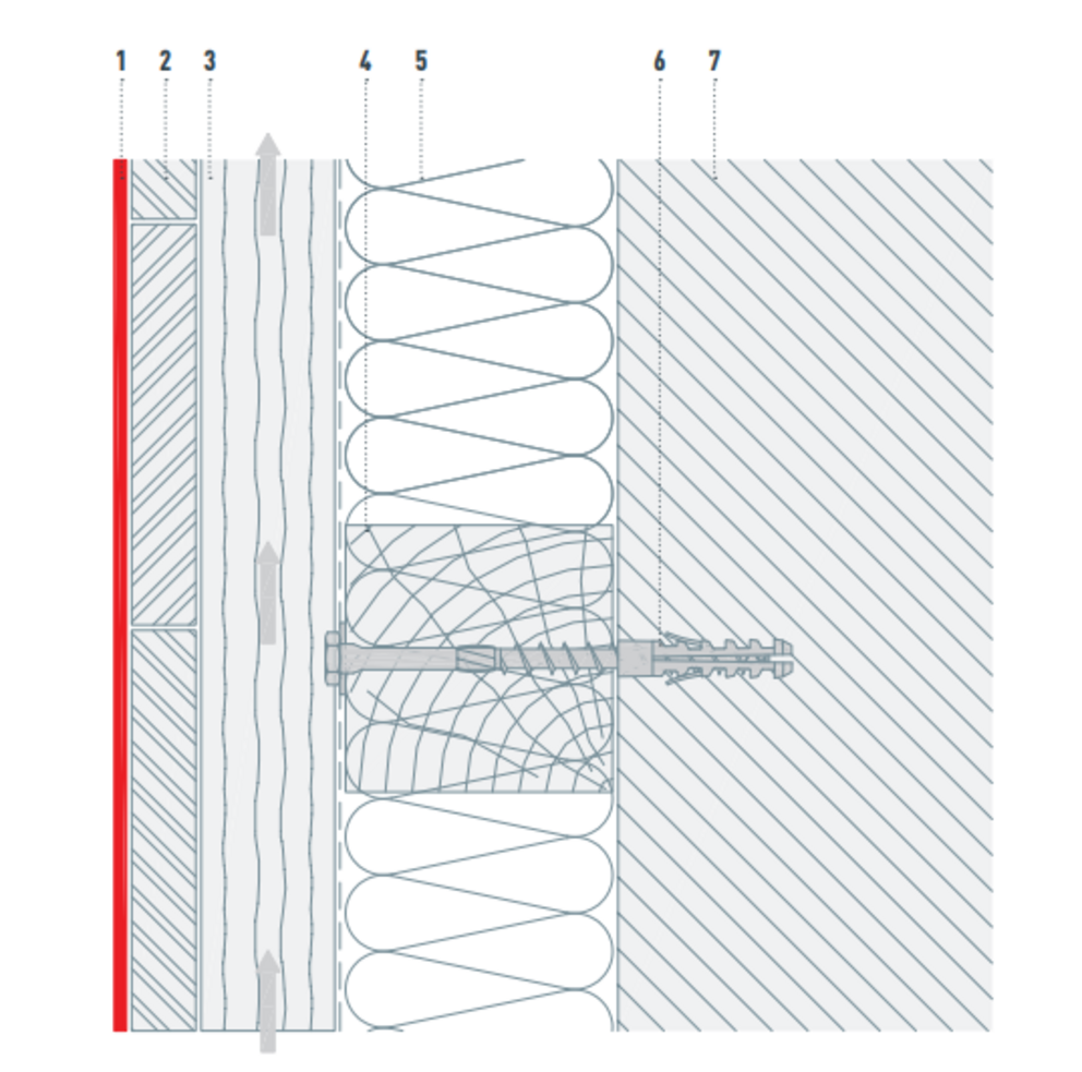 The rainscreen cladding system combines functional, economic and aesthetic properties. It provides protection against noise, cold and heat, and prevents the load-bearing structure from being affected by atmospheric conditions. The construction of the rainscreen is characterised by a clear, functional separation of the individual component layers. Ventilated rainscreen cladding is primarily made up of multiple components that have been structurally coordinated. Moisture is diverted via the ventilation gap, which keeps the insulation and brickwork dry.