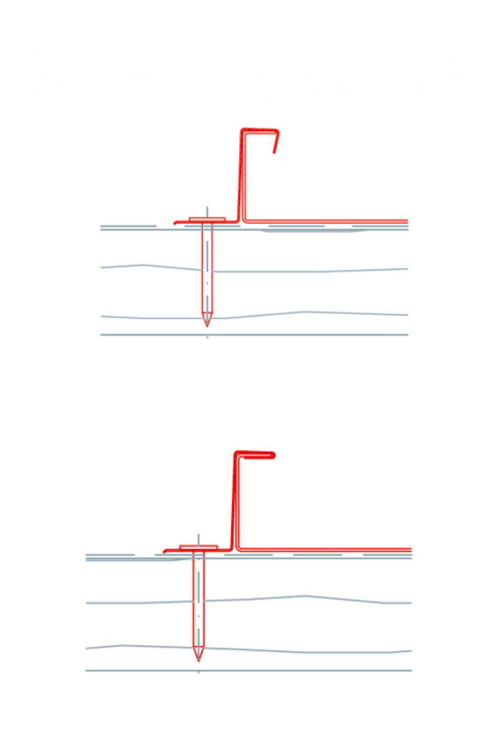 Positioning and spacing of clips is of particular importance with double standing roof and wall applications. Properly installed clips are crutial for functionality of a roof or facade. In order to avoid abrasion and other damages toroof and wall applications and thus ensure the durabiltity in the long term, the correct installation by a specialist is an important criterion in addition to a well-engineered product. The driving depth of grooved nails or magazine screws, the parallel seating to the fold, and the correct clip spacing are just some of the basic aspects that must be observed!