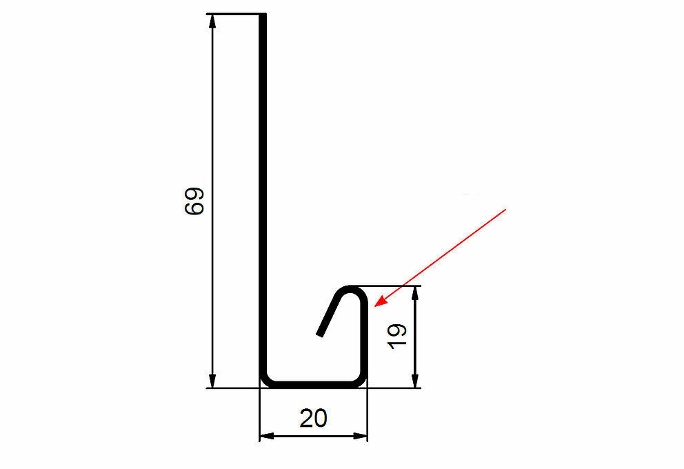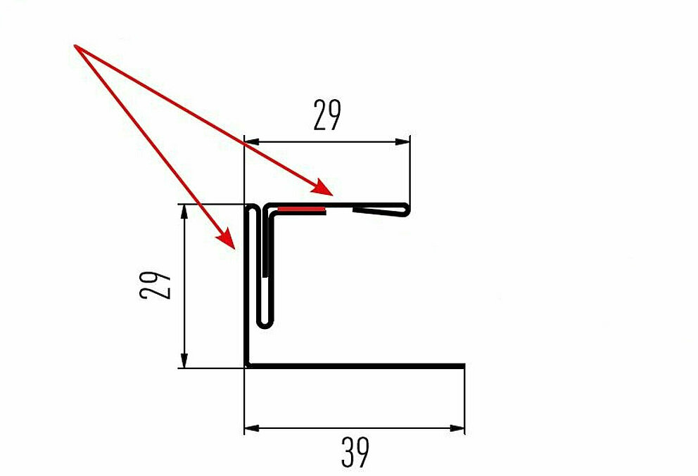 The red arrow indicates the colour side of the accessory profiles in each case.