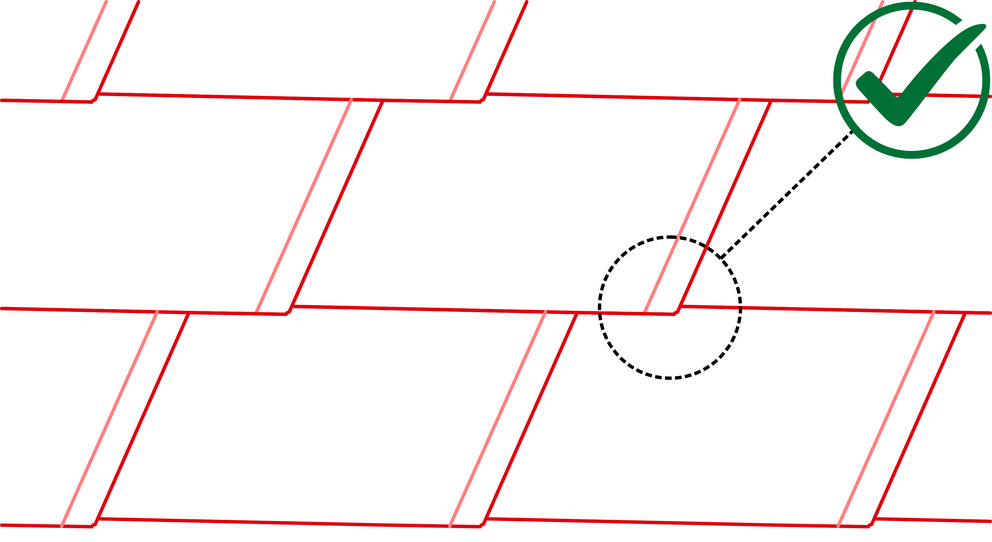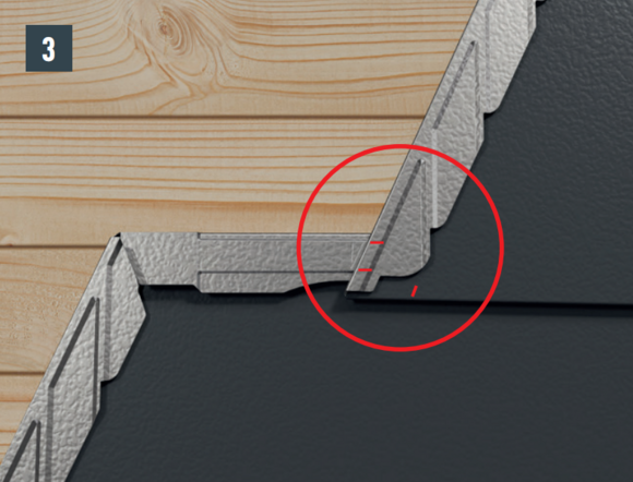 Due to the shape of the DS.19 shingle, there is a lowering at the heel of the DS. 19 shingle. Keep to this lowering when laying the first DS.19 shingle in each row by not pushing the first DS.19 shingel all the way to the top in the starter strip or fold. Leave the heel of the first DS.19 shingle until the upper shingle fold runs straight through over the entire length. Avoid covering the first DS.19 shingle
