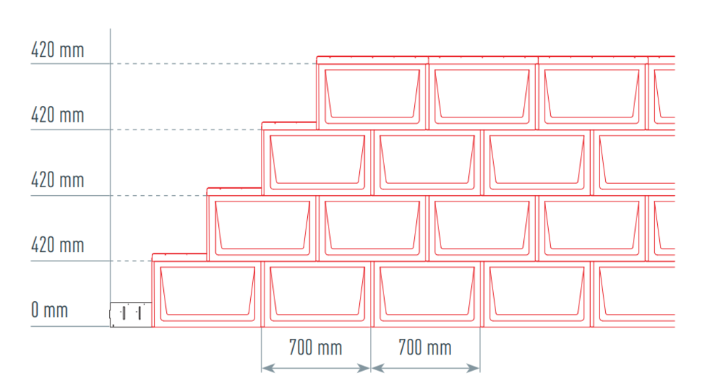 Horizontal lacing: 700 mm (every second row offset by 350 mm)
