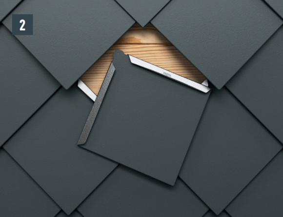 • Slightly open the seam of the new 20 x 20 rhomboid roof tile, push up and fasten (Image 3).