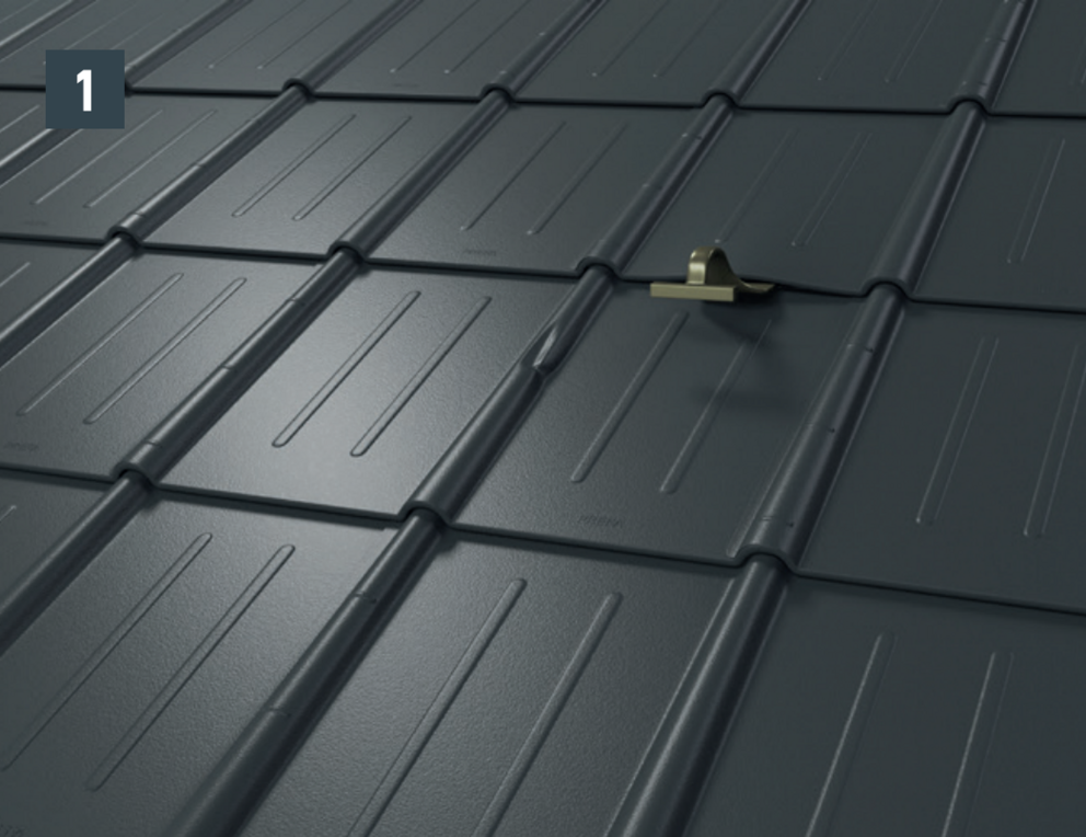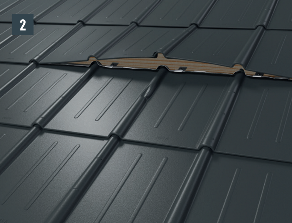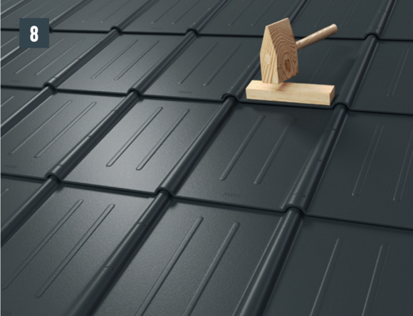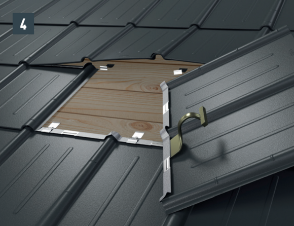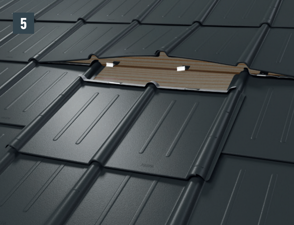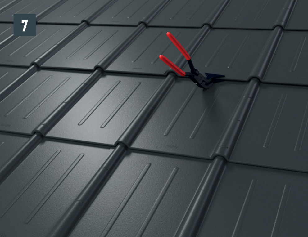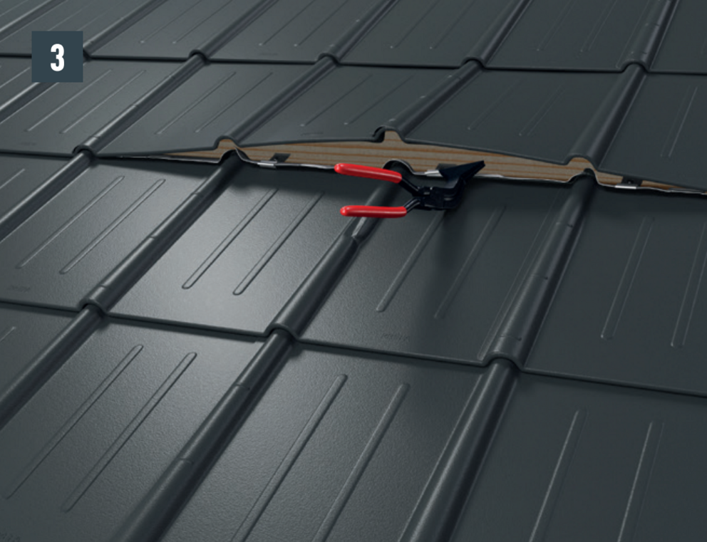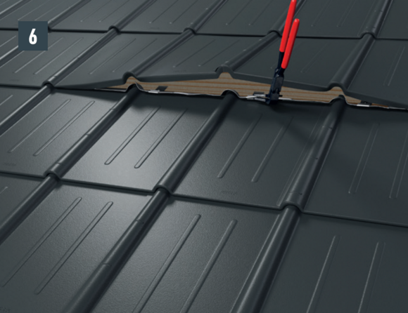 • Before pushing in the new roof tile, tension both outer grooves and open the upper fold slightly. The new tile can be covered with both lateral grooves over the others (Image 5).