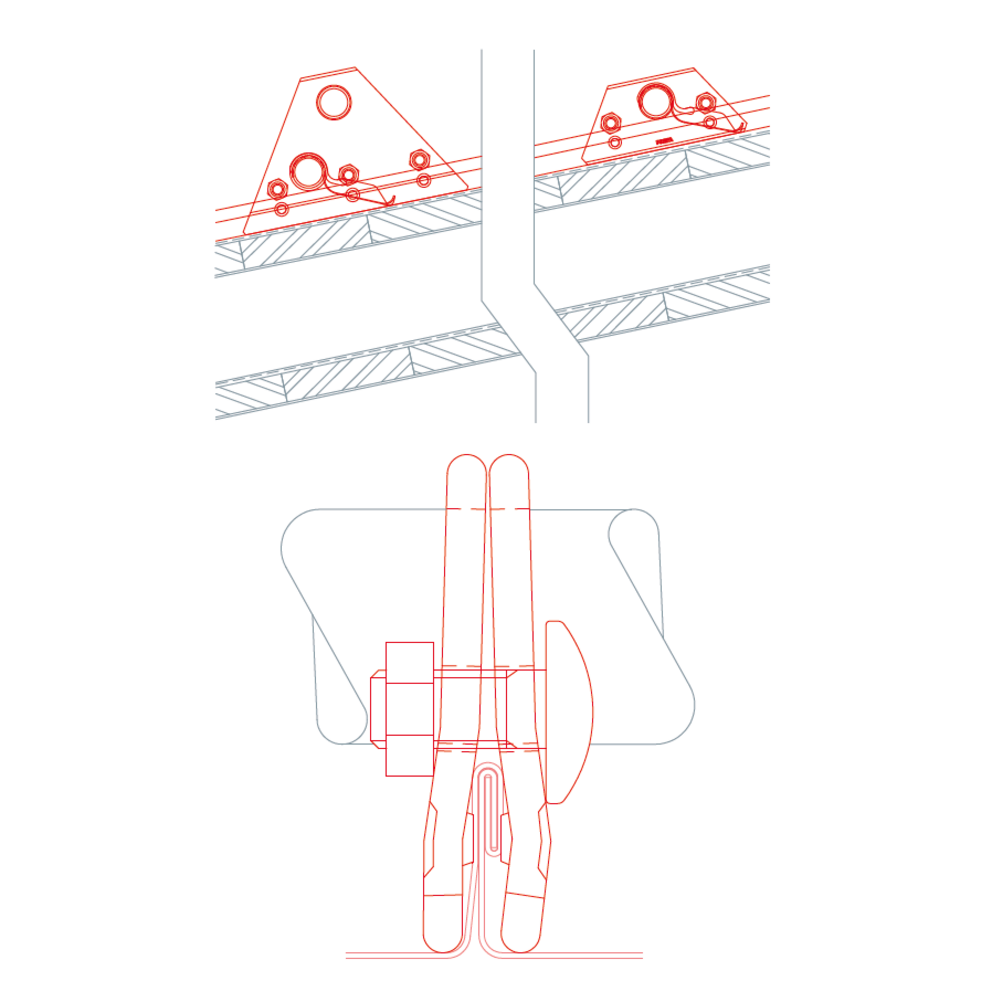 In the case of standing seam coverings, the snow guard is secured using seam clamps incl. snow guard pipes and ice stoppers. The required number of the rows of snow guards is to be calculated depending on the property and the location.
