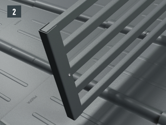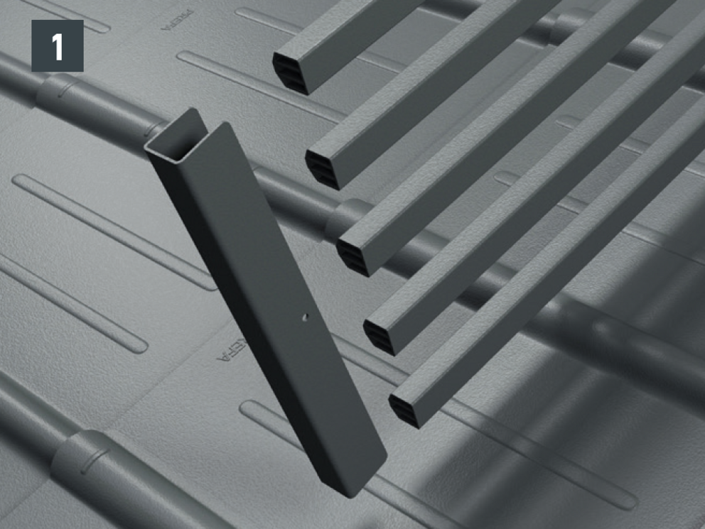 The pipe-style snow guard system can only be installed on a solid, flat and fully supported substrate. |