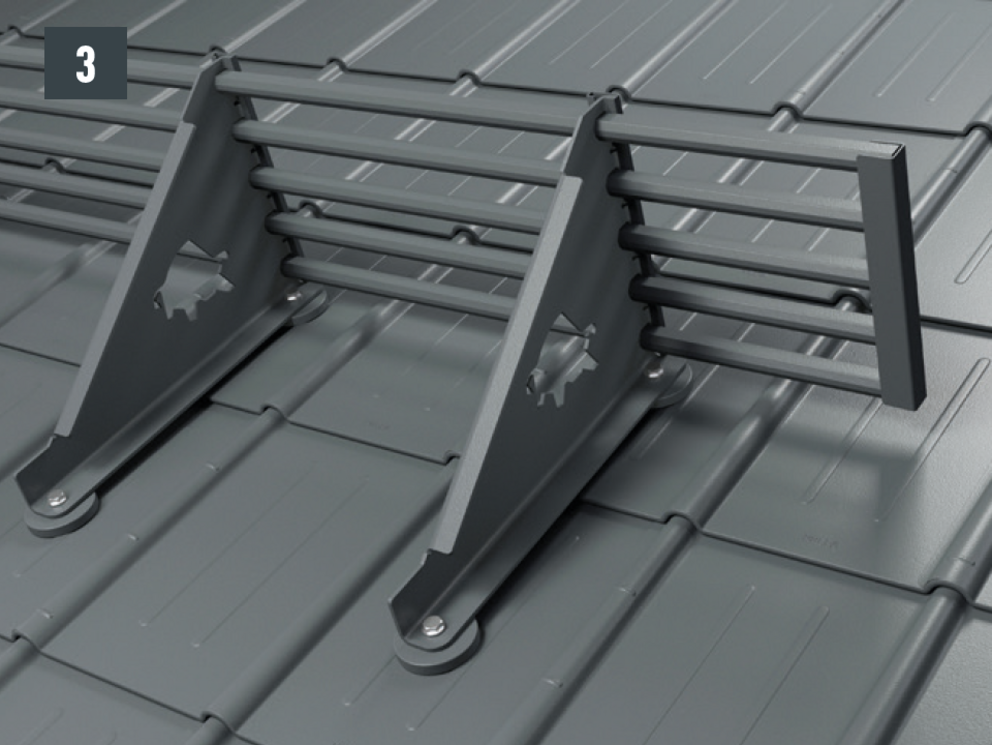 Depending on the object and location, it may be necessary to mount several rows of mountain snow guards. The maximum permissible distances are to be calculated depending on the snow load, the roof pitch and the rafter distance.