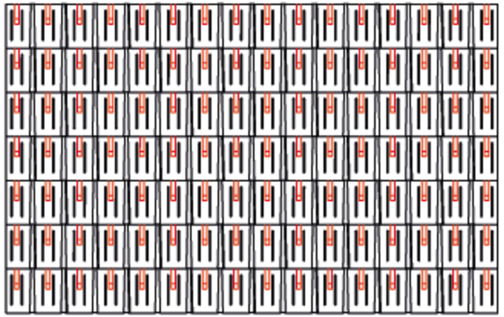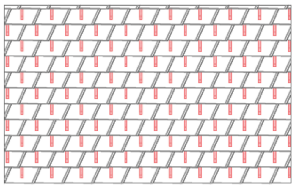 With rhomboid roof tiles 29 × 29, 3, 6 or 12 snow guards are installed per m² (see table below - Installation patterns DR1, DR2 and DR3). The first two rows must be equipped with snow guards throughout.