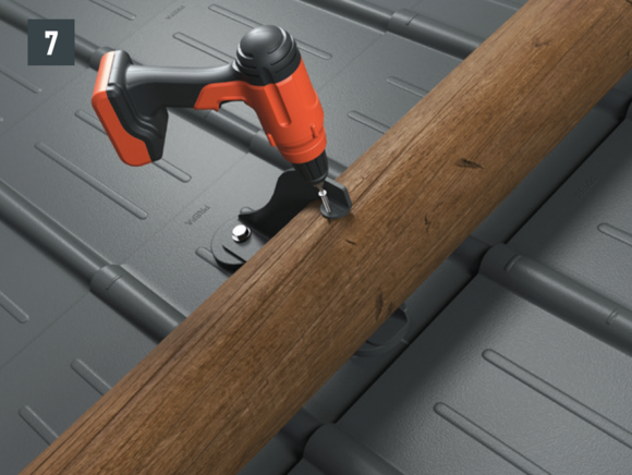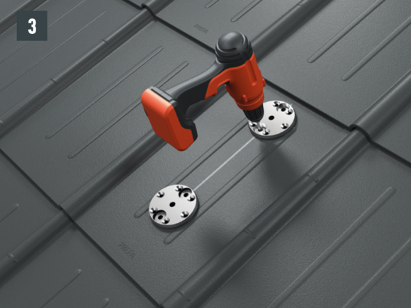Do not place and fasten foot section on the fold or crest of the PREFA roof covering. It may be necessary to fit a base plate (e.g. if there is a rebate or crest in the area of the rafters).