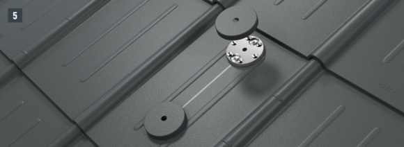 Do not place and fasten foot section on the fold or crest of the PREFA roof covering. Observe mounting areas on the respective roof products. It may be necessary to fit a base plate (e.g. if there is a rebate or crest in the area of the rafters).