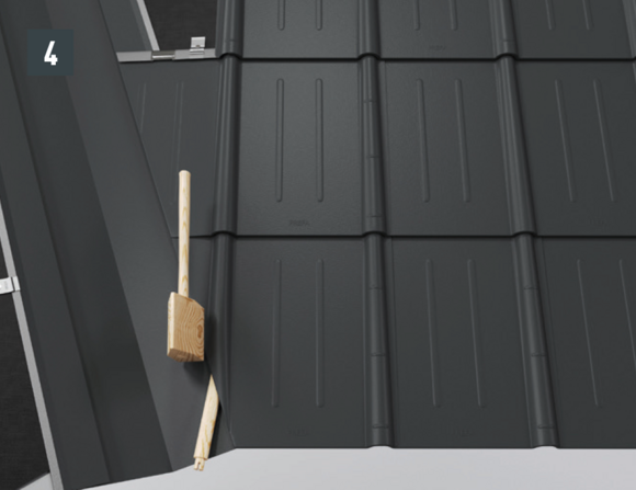 After preparing the DS.19 shingle, the joint flashing (e.g. edge cladding or wall connection cove) can be executed and worked into the roof covering.