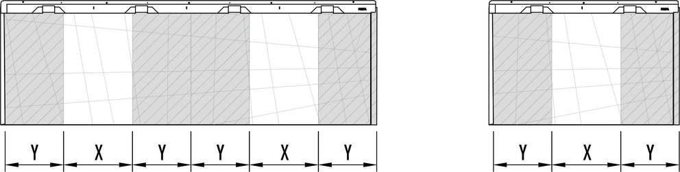 When installing the FX.12 roof panels, no angular fold may lie directly over another, a lateral offset of at least 220 mm must be observed. When combining large and small FX.12 panels, the joint of the first panel must be started in area “X” for each new row (see figure below).