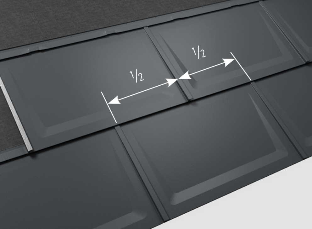 In order to facilitate laying with half joint offset, a mark is to be made on the upper fold of the R.16 roof tile.