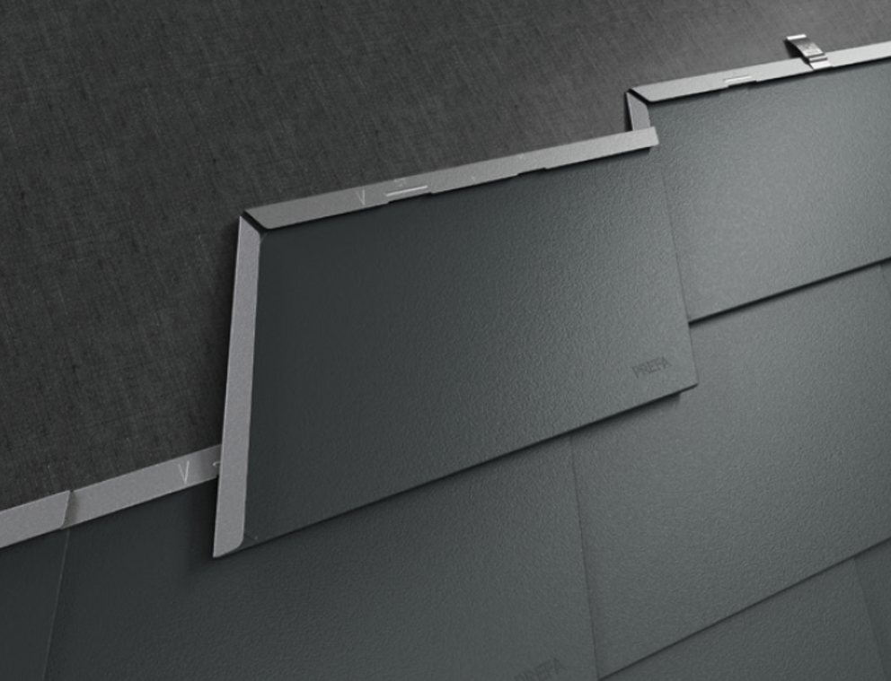 The shape of the shingle tapers, resulting in a hanging heel (lowering). The head (upper edge) of the shingle is aligned horizontally (parallel to the starter strip) during installation and fastened. This creates the sawtooth pattern typical of shingles at the lower side of the shingle rows.